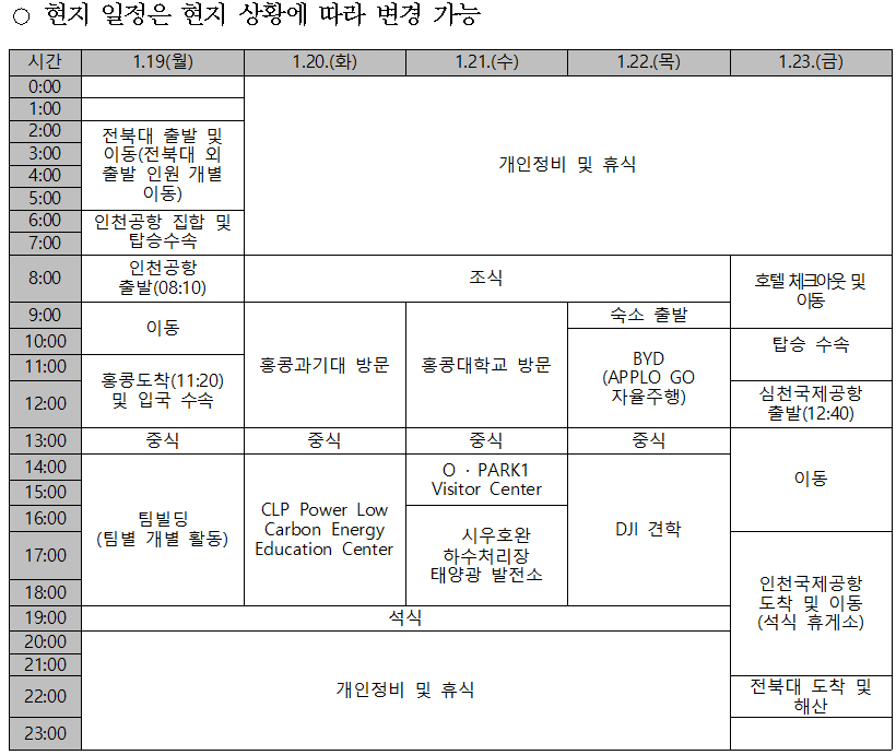다. 견학장소 : 홍콩대학교, 홍콩과기대, CLP Power Low Carbon Energy Education Centre 등